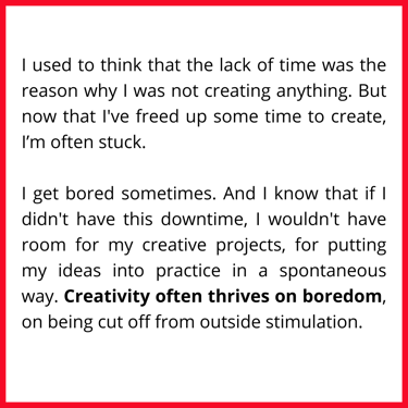 Sans cesse, nous nous trouvons des excuses pour ne pas créer, car en réalité, nous avons peur. La meilleure excuse : "je n'ai pas le temps". Et pourtant, ralentir est une des clés pour créer. © Textes & dessins : Cécile Surgé