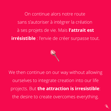 L'appel à créer insiste sans relâche et s'impose à nous malgré nos résistances. Comment transformer cet élan créatif et retranscrire ces tiraillements en création ?
