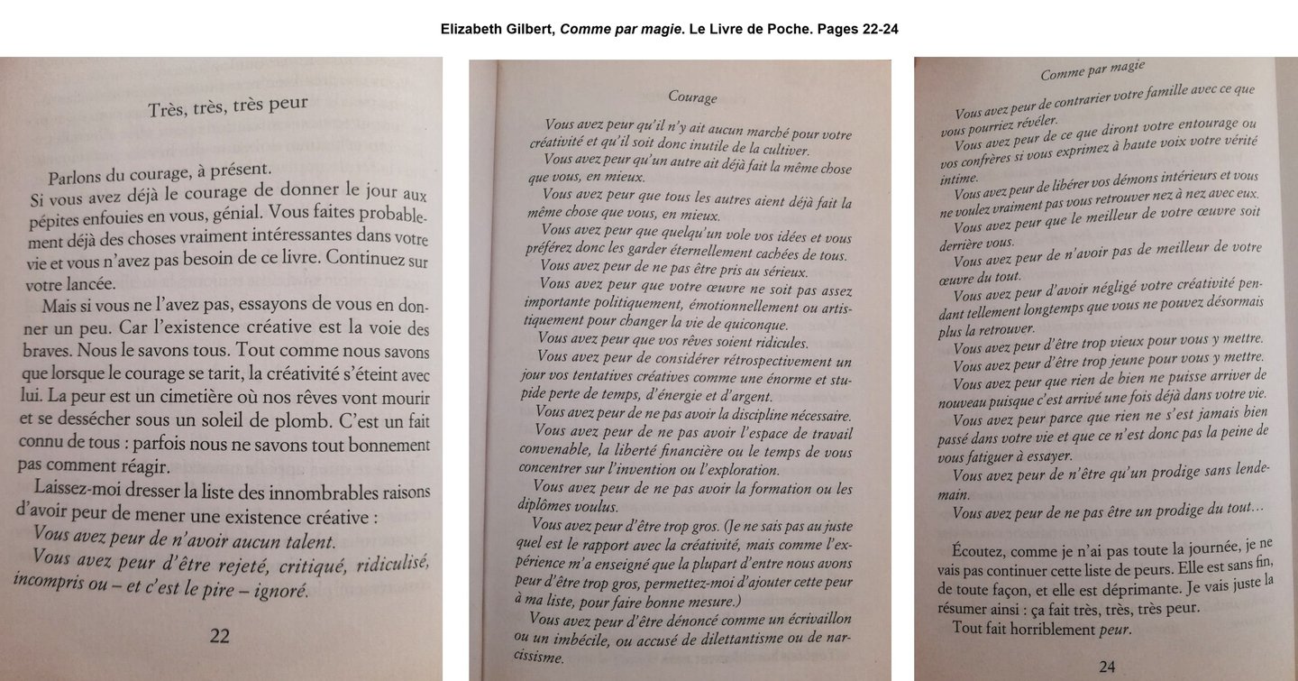 Elizabeth Gilbert, Big Magic, traduit en français par Comme par magie. Vivre sa créativité sans la craindre.